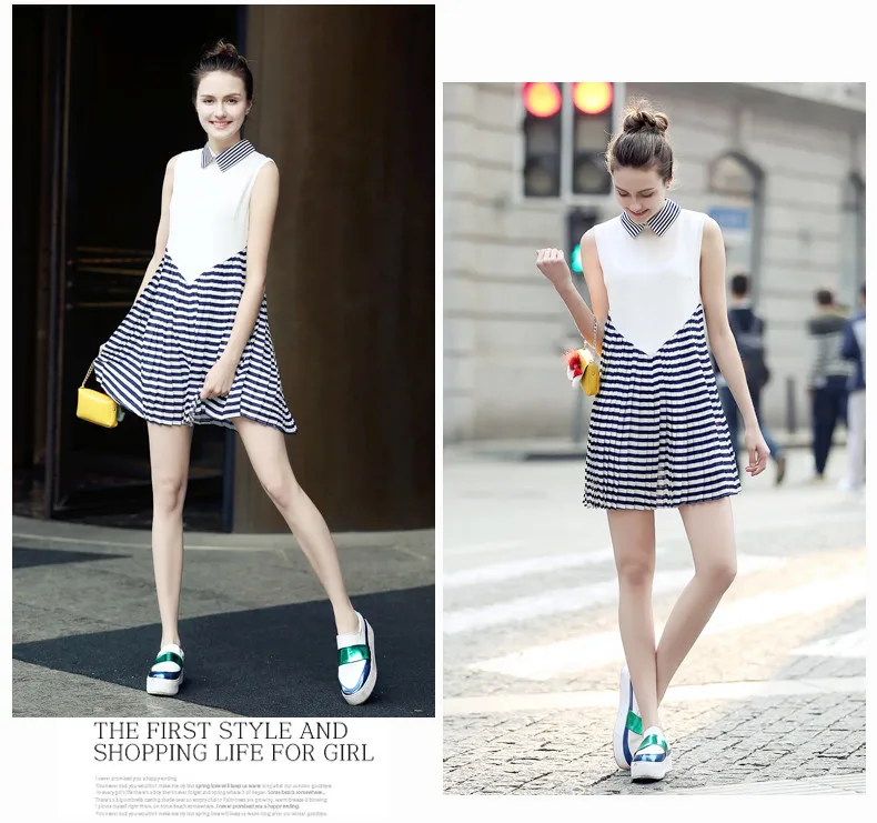2017 Summer Fashion Casual Striped Women Dress Elegant Sleeveless Office Dress Mini Party Vestidos Dresses Vintage Sundress