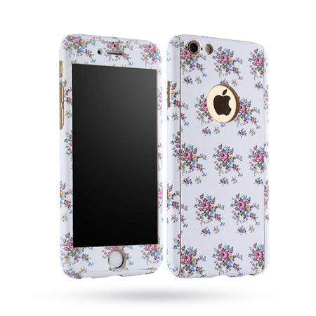 6 6s Floral 360 Case For Iphone 5 5s SE 6 6s Plus Fashion Flower Floral Leopard Full Coverage Front Case Back Cover + Glass Film