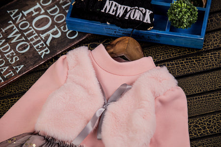 Bear Leader Grils Dress 2016 New Winter Dresses Children Clothing Princess Dress Pink Long Sleeve Wool Bow Design Girls Clothes