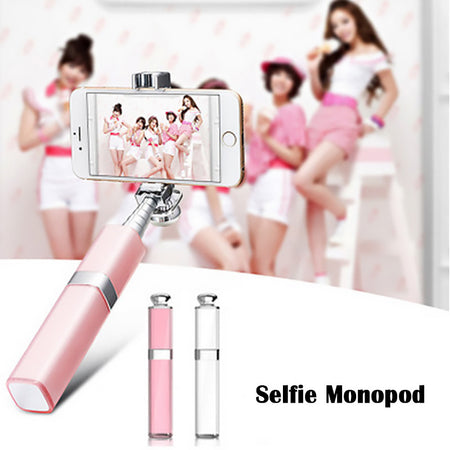 Mini Portable Monopod Extendable Selfie Stick For Iphone Samsung Android Fashion Wired Lipstick Palo Self Sticks Groove Camera