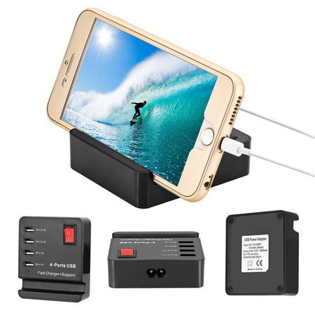 Multi-function USB Charger 4 Ports USB Power Charge Adapter US EU Plug With Stand Holder For iphone Smartphone iPad Quick Charge