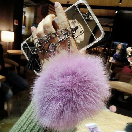 Retro Chain Tassel fox puff pompoms fur ball Phone Cases For iphone 7 6 Plus Case Clear mirror Soft TPU Silicone Back Cover Capa