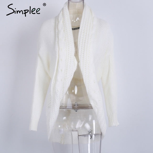 Simplee Winter shrug knitted sweater cardigan Women elegant autumn white cardigan Female turn down collar sweater cardigan 2017